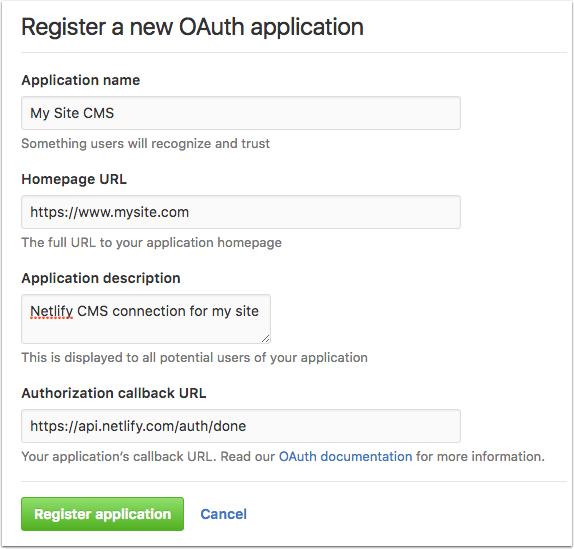 {{slug}}: the url-safe filename of the entry changed{{collection}}: the name of the collection containing the entry changed{{path}}: the full path to the file changed{{message}}: the relevant message based on the current change (e.g. thecreatemessage when an entry is created){{author-login}}: the login/username of the author{{author-name}}: the full name of the author (might be empty based on the user’s profile)